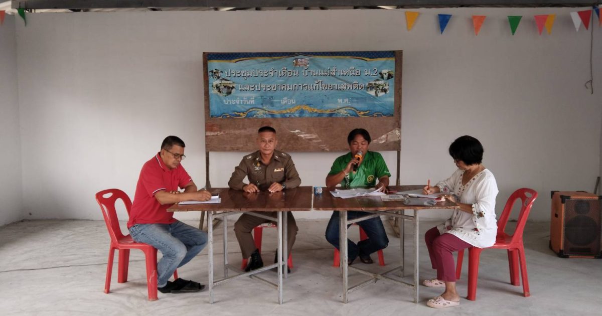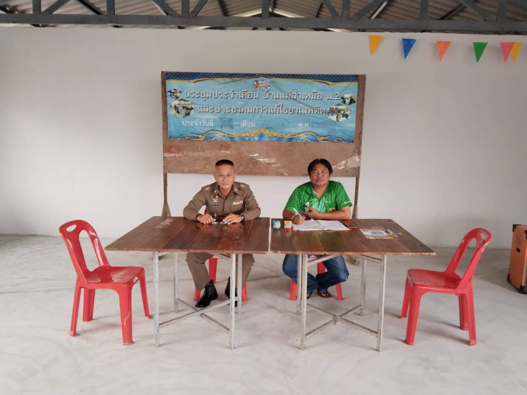 ว่าที่ พ.ต.ต.นฤนารถ ทองดี สวป.(ชส.)สภ.ศรีสัชนาลัย ได้ร่วมประชุมประจำเดือน ที่ ม.2 ต.แม่สำ ได้ประชาสัมพันธ์เรื่องกลโกงออนไลวิธีการแจ้งความออนไลและเรื่องการห้ามเผาขยะในที่โรงแจ้ง