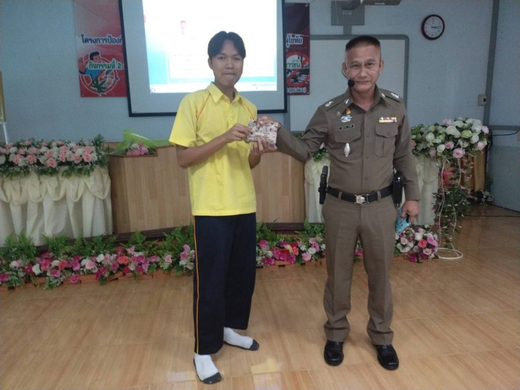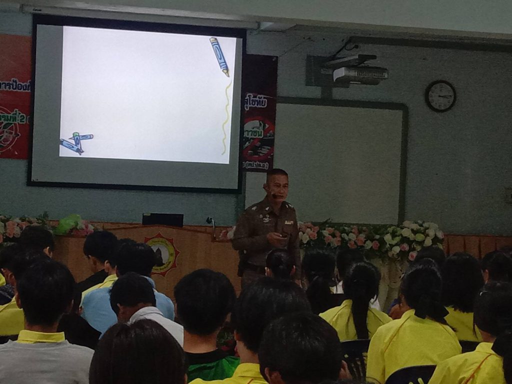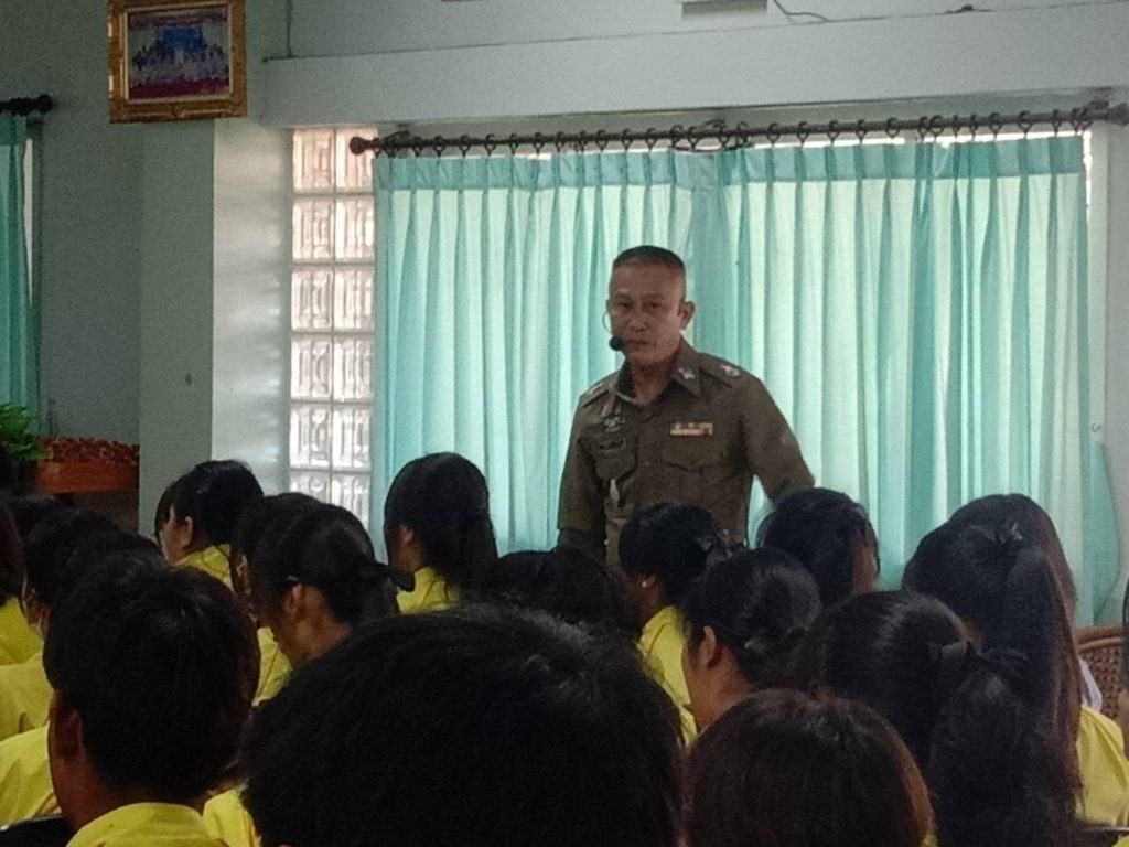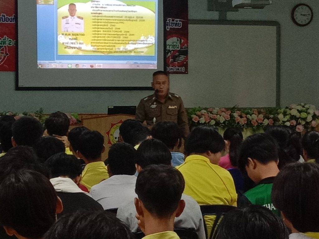 ว่าที่ พ.ต.ต.นฤนารถ ทองดี สวป.(ชส.)สภ.ศรีสัชนาลัย ได้เป็นวิทยากรให้ความรู้เรื่องยาเสพติดให้กับนักเรียนโรงเรียนท่าชัยวิทยา จำนวน100คน