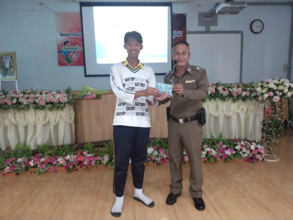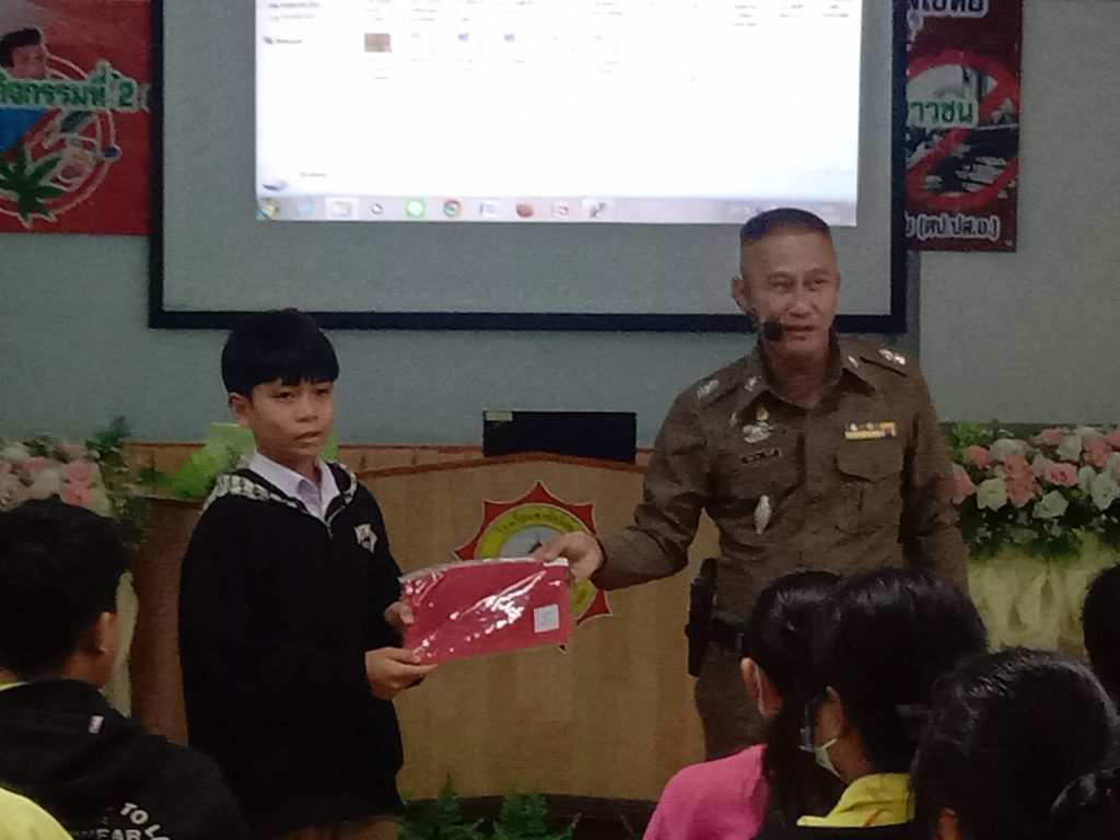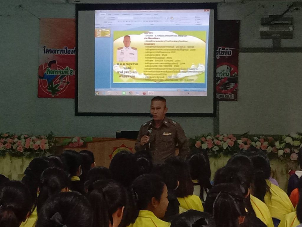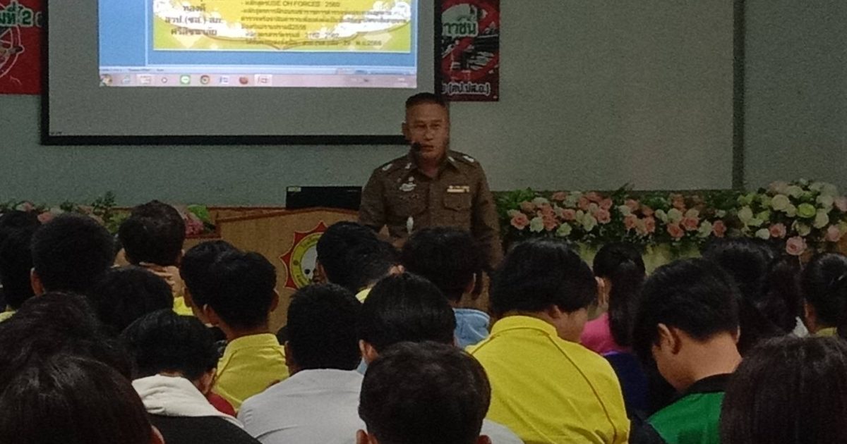 ว่าที่ พ.ต.ต.นฤนารถ ทองดี สวป.(ชส.)สภ.ศรีสัชนาลัย ได้เป็นวิทยากรให้ความรู้เรื่องยาเสพติดให้กับนักเรียนโรงเรียนท่าชัยวิทยา จำนวน100คน