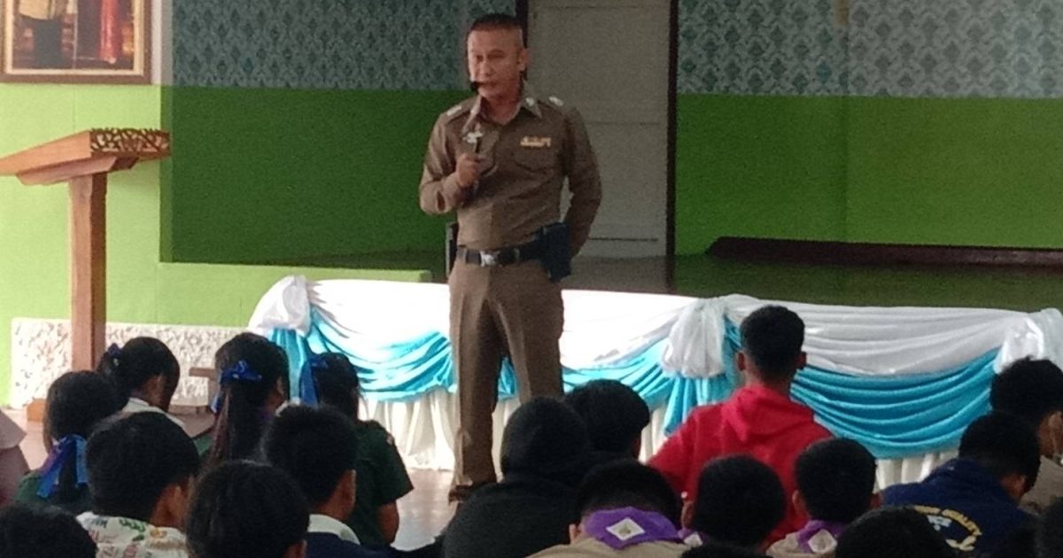 ว่าที่ พ.ต.ต.นฤนารถ ทองดี สวป.(ชส.)สภ.ศรีสัชนาลัย ได้เป็นวิทยากรให้ความรู้เรื่องยาเสพติดให้กับนักเรียนโรงเรียนเมืองด้งวิทยา จำนวน100คน