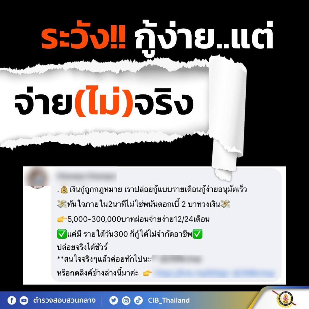ทุกวันนี้มิจฉาชีพมักอ้างว่าปล่อยเงินกู้ง่าย ใช้เอกสารน้อย ไม่มีงานประจำก็กู้ได้ ไม่ต้องมีคนค้ำ ดอกเบี้ยต่ำ และใช้ช่องทางโซเชียลในการโฆษณา เพราะเข้าถึงเหยื่อได้ง่าย เมื่อเหยื่อหลงเชื่อทำการโอนเงินค่าธรรมเนียมหรือค่าดำเนินการให้ก็จะหลบหนีไป นอกจากนี้บางรายยังถูกเอาข้อมูลส่วนตัวไปแอบอ้างเพื่อทำการฉ้อโกงอื่น ๆ ต่อไปได้ ดังนั้นจึงควรตรวจสอบผู้ให้กู้เงินว่าถูกกฎหมาย และเชื่อถือได้ เพื่อป้องกันไม่ให้ตกเป็นเหยื่อของมิจฉาชีพ ดังนี้ครับ
