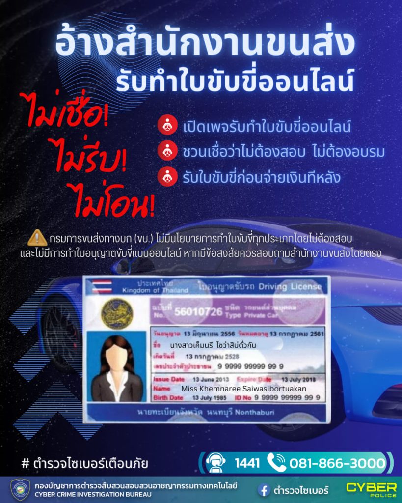 #ตำรวจไซเบอร์#เตือนภัยออนไลน์#ใบขับขี่#หลอกทำใบขับขี่