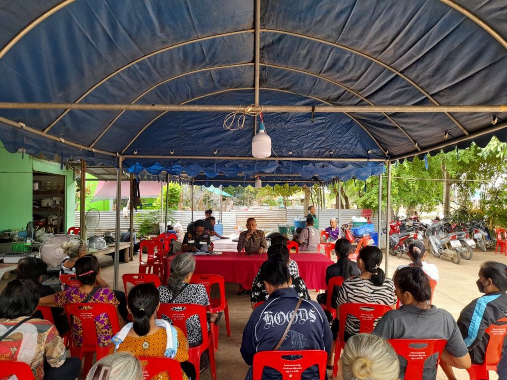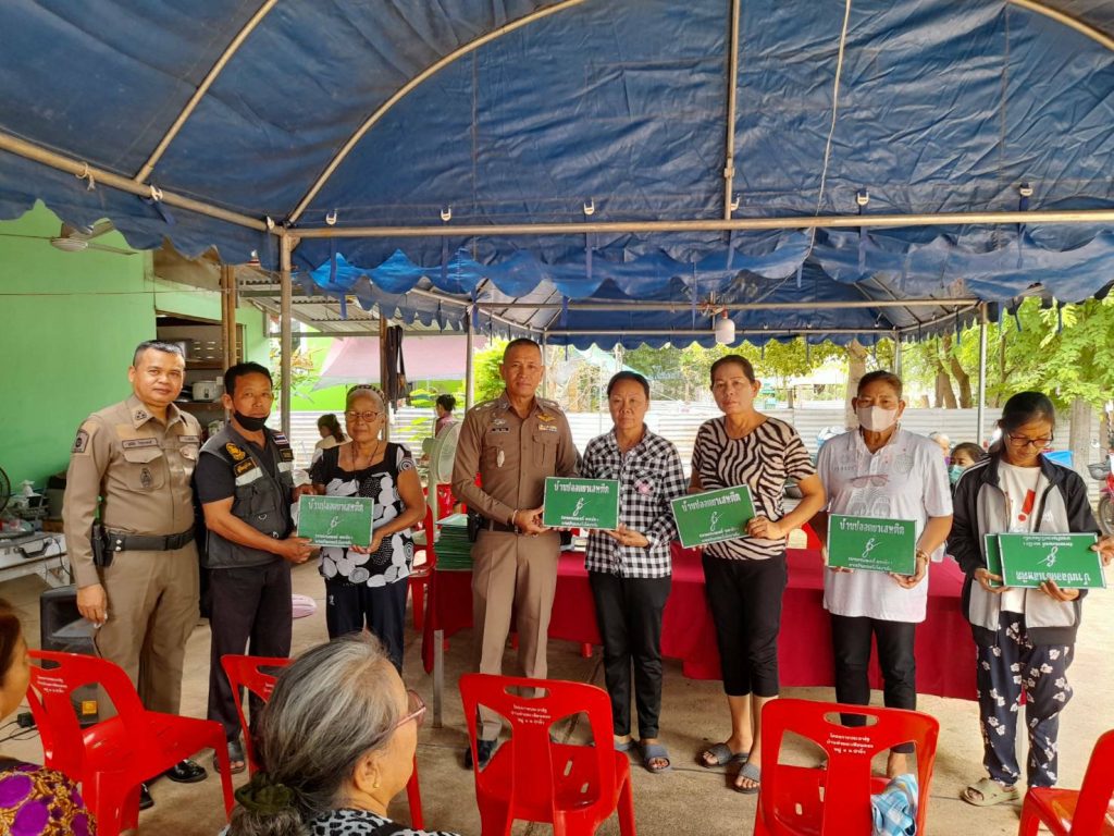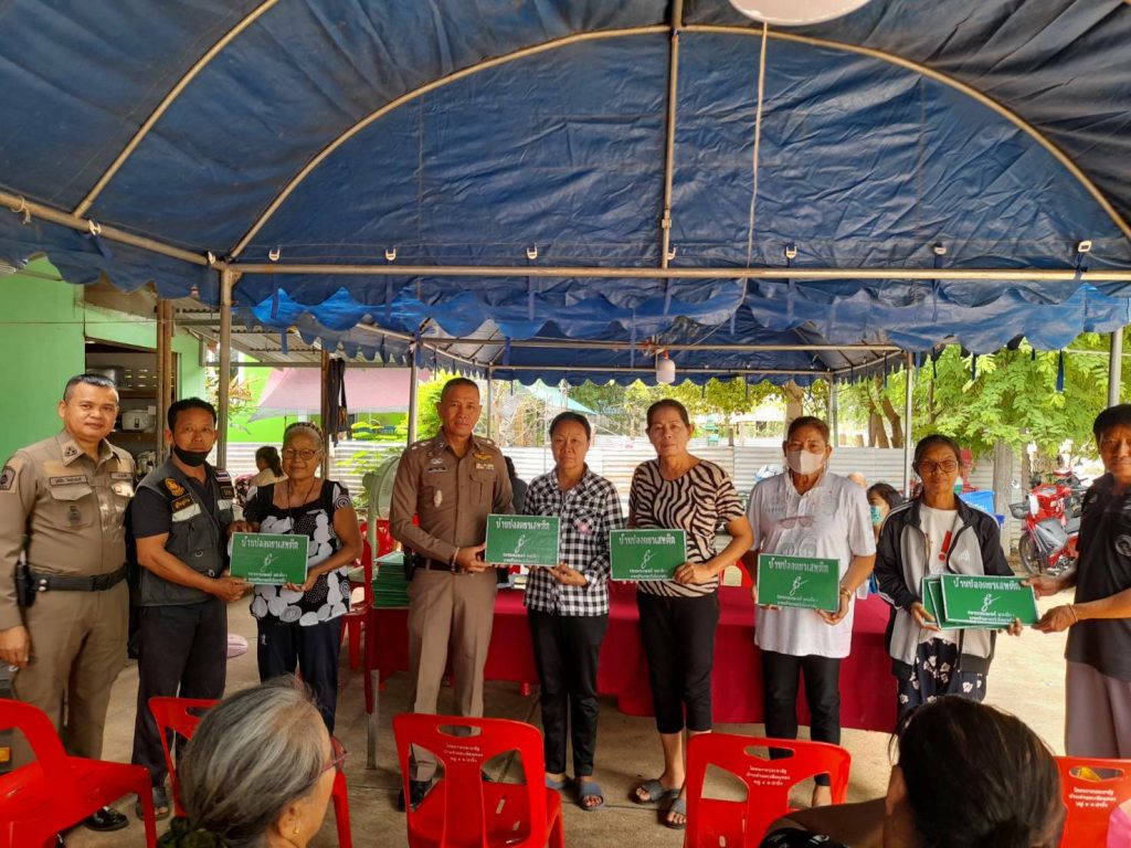 -ปัญหาการแพร่ระบาดของยาเสพติด การป้องกันฯ และการแก้ไขปัญหาในชุมชน พร้อมได้มอบป้ายปลอดยาเสพติดให้กับชาวบ้าน