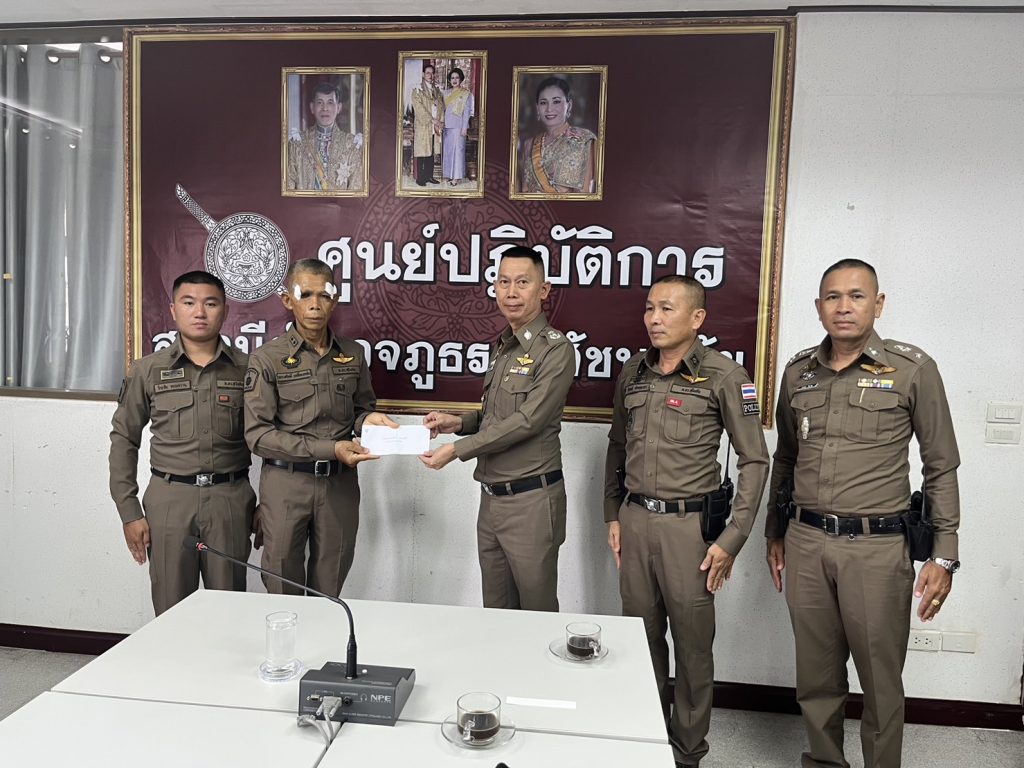 พร้อมทั้งมอบเงินช่วยเหลือบำรุงขวัญและกำลังใจ ให้ ร.ต.ท.ณรงศักดิ์ เกลื่อนกร่น เจ้าหน้าที่ตำรวจที่ถูกทำร้ายร่างกาย